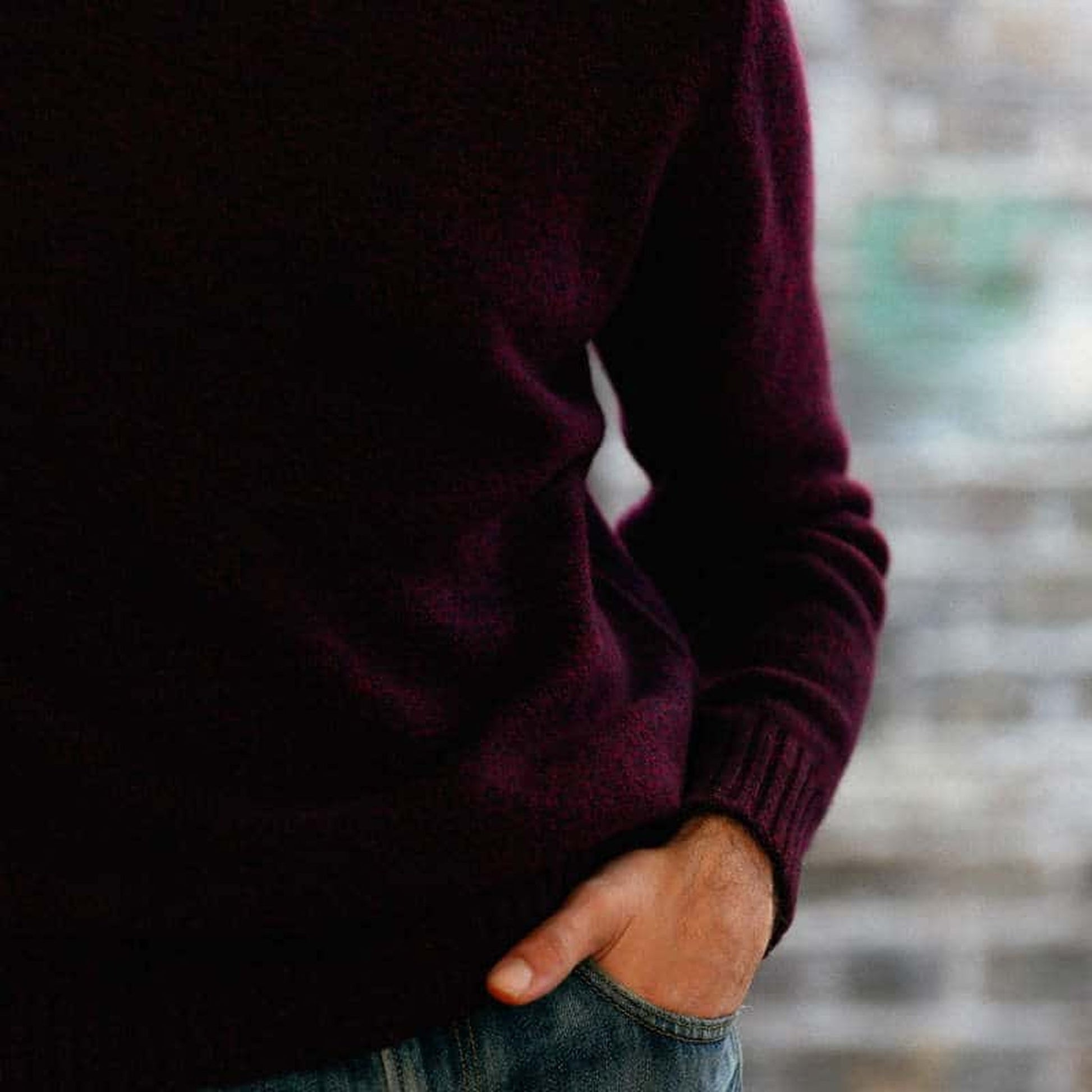 Burgundy Dean Lambswool Crew Neck Jumper highlights