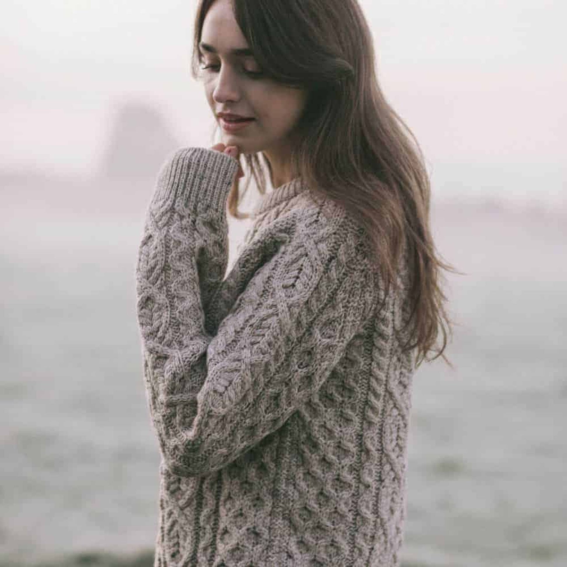 The Hudson Aran jumper is a true classic jumper. The colour skiddaw comes from the name of the Lake district peak. Originally created for fishermen going out in wet windy conditions at sea. A true fisherman's rib needs almost double the yarn of a plain knit jumper of the same size. Because of this it offers extra warmth when the weather closes in. The Hudson Aran jumper is a 5gge chemical free British wool jumper. Not only that but wool also has natural water repellency and antibacterial properties. Sourced from a British Wool Accredited farm in Yorkshire - just 60 miles from the Peregrine factory in Manchester. These classic ladies aran jumpers are made in batches of only 200 pieces. These jumpers are designed to be oversized for an extremely comfortable and sumptuous fit.