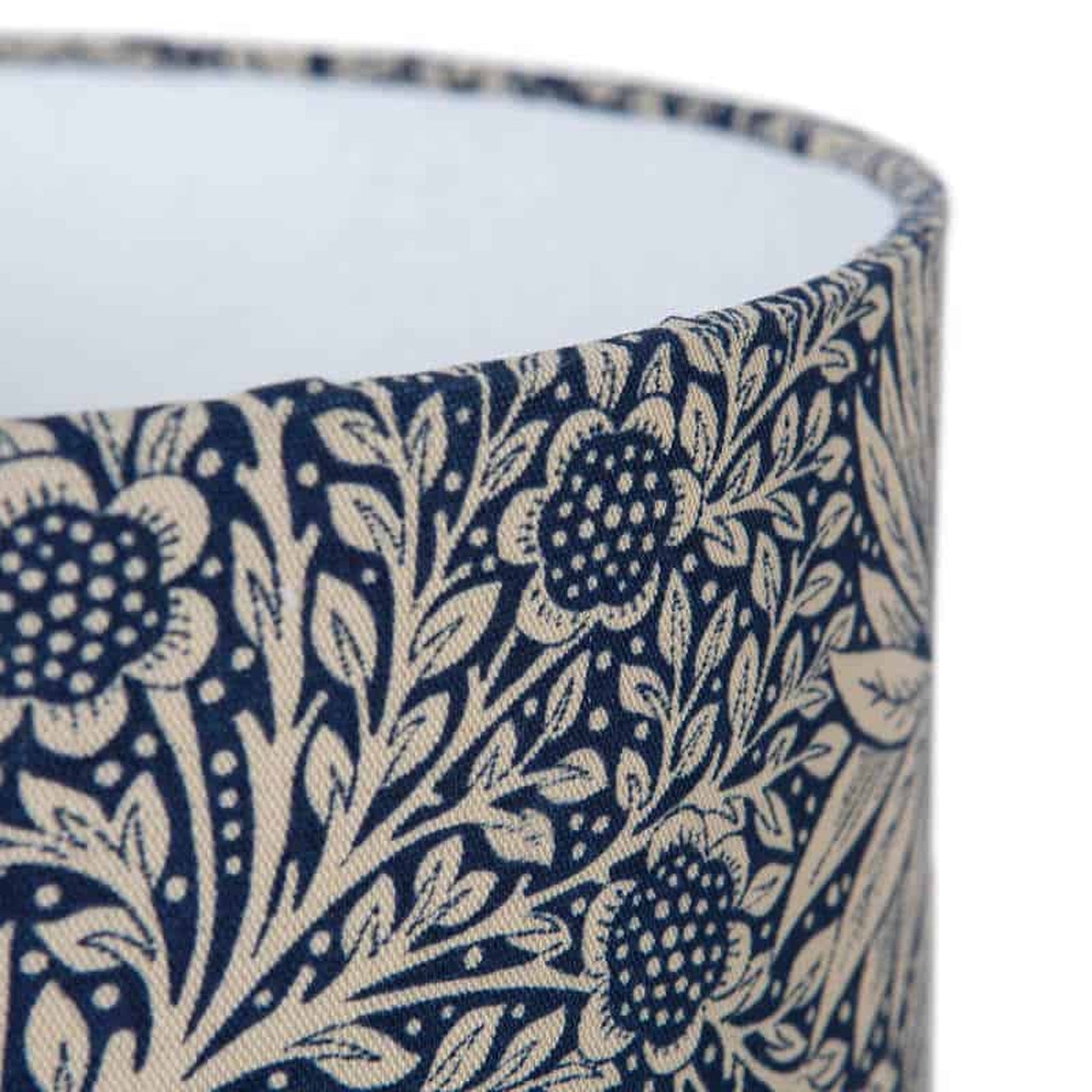 Marigold Indigo design meets 30cm cotton lampshade quality from Bristol workshops. Great choice for those seeking impactful Morris-inspired lighting with British manufacturing excellence.