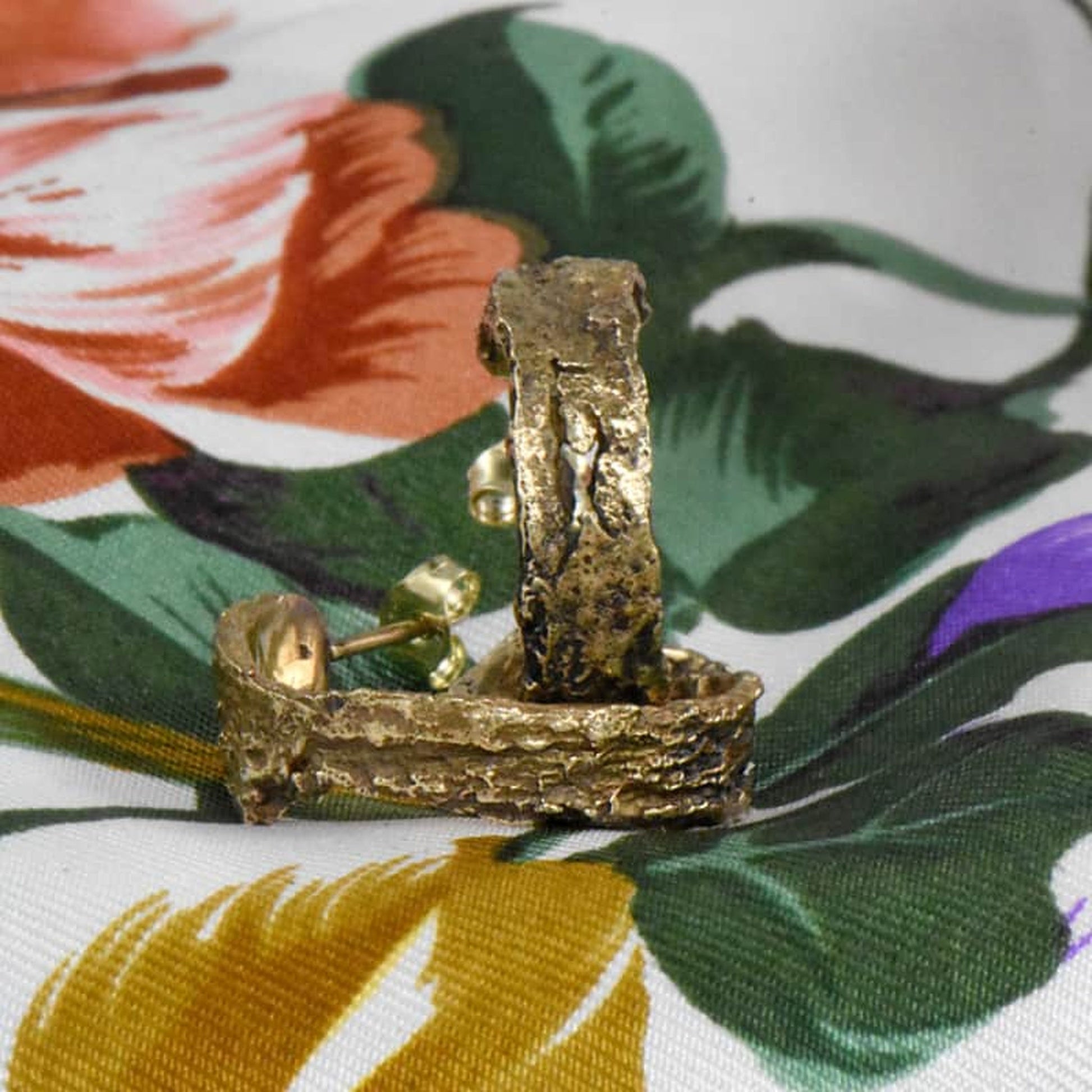 Handcrafted in London from actual tree bark found in British woodlands, these medium bronze hoops feature 9ct gold posts. Great choice for nature enthusiasts seeking distinctive, wearable art.