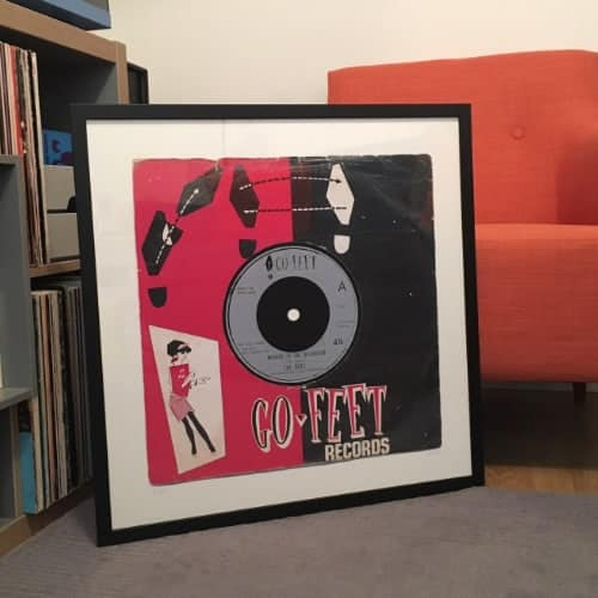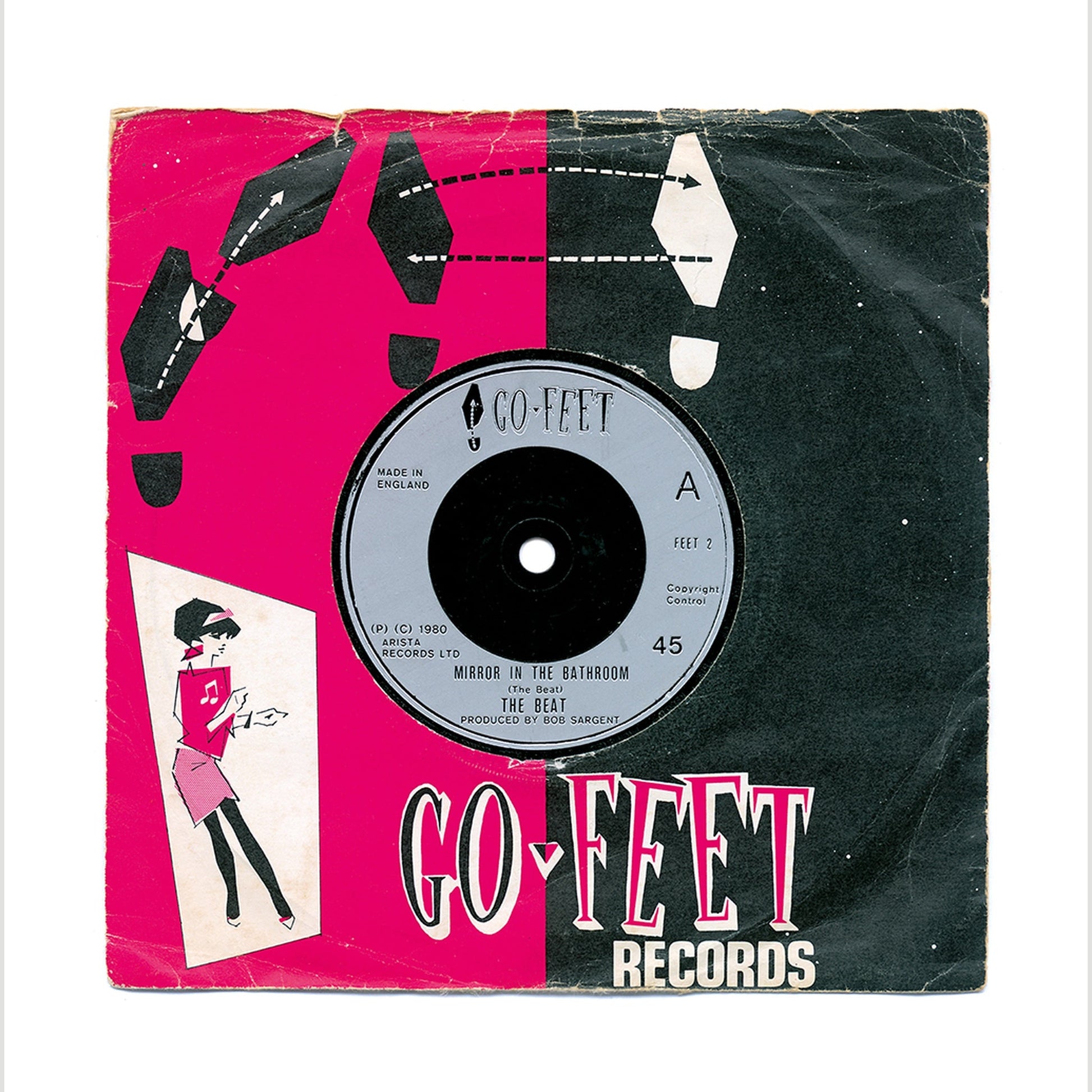 Mirror in the Bathroom art printed large scale 57cm x 57cm (image size 46cm x 46cm) This Giclée Print of an original image of Mirror In The Bathroom 7" Vinyl Single Record in a Go Feet! from a record lovers' record collection, with all of the patina of years of love and use.