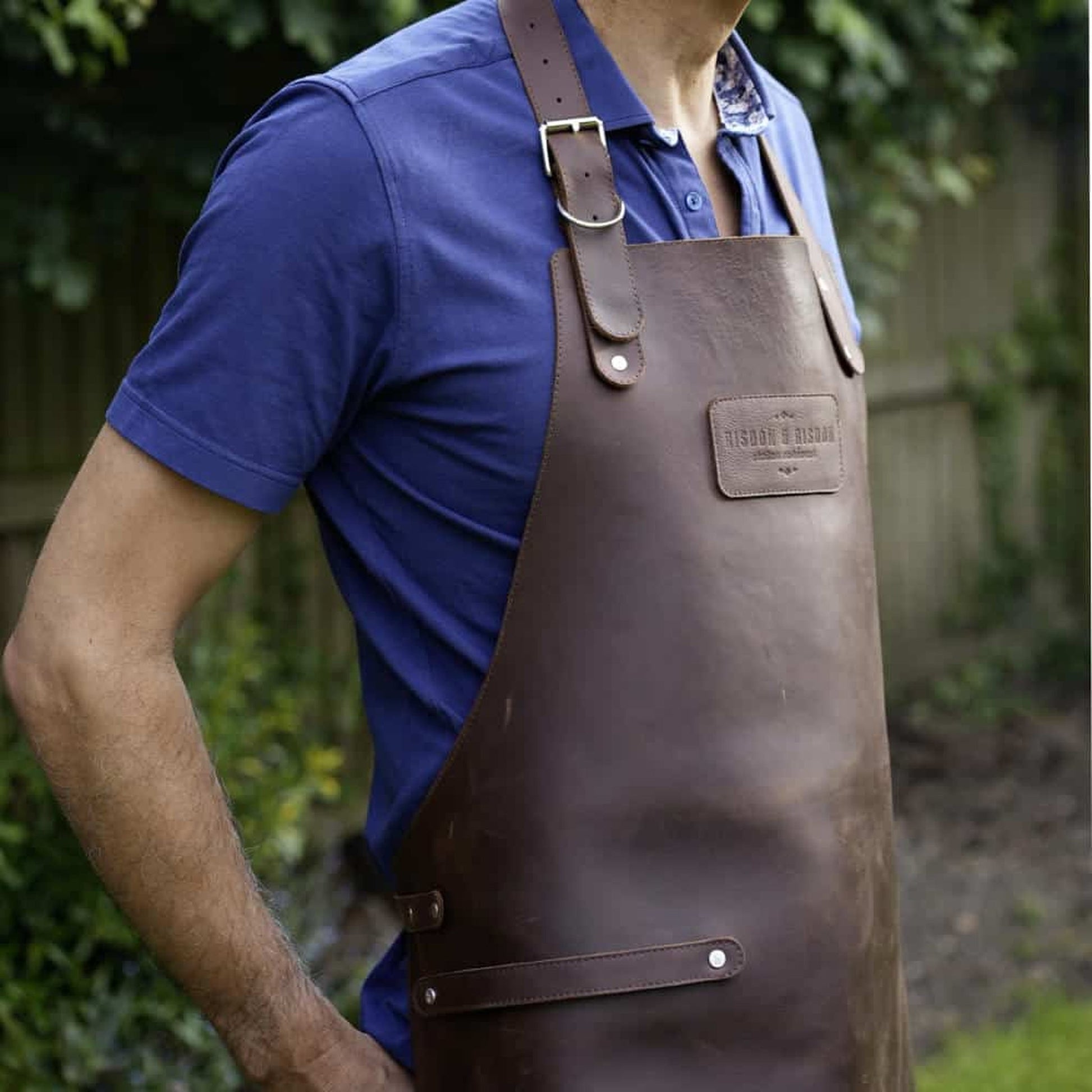 The Montford leather apron from Risdon & Risdon is a top Grain Full Leather Apron handmade in the heart of the UK. Quite possibly the perfect apron which is great for chefs, woodworkers, artists and anyone who needs additional protection in their craft. This version of the Montford comes with a towel loop for when you are running a busy BBQ and a handy leather pocket to keep the tools of your trade in.