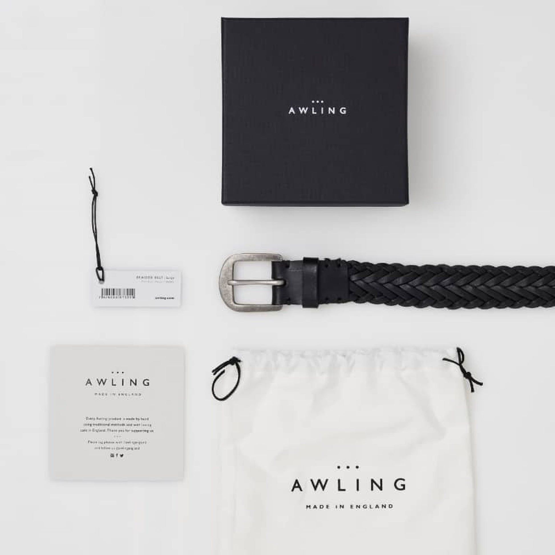 What do you do when you have found your personal style, accent your look with a classic and timeless leather belt. Awling belts are handcrafted in England using the finest Italian vegetable, full grain leather. The Braided black leather belt is deep and richly tanned, the pewter buckle offers a simple yet bold look. A blind, debossed Awling Belts Branding can be found on the rear of the belt, with a classic, single leather keep loop on the 32mm/11/4-inch strap all equals the splendid Pitch Black leather belt for the modern man or woman to use and love. Every Awling belt is designed to last a lifetime, looking more rustic with every use.