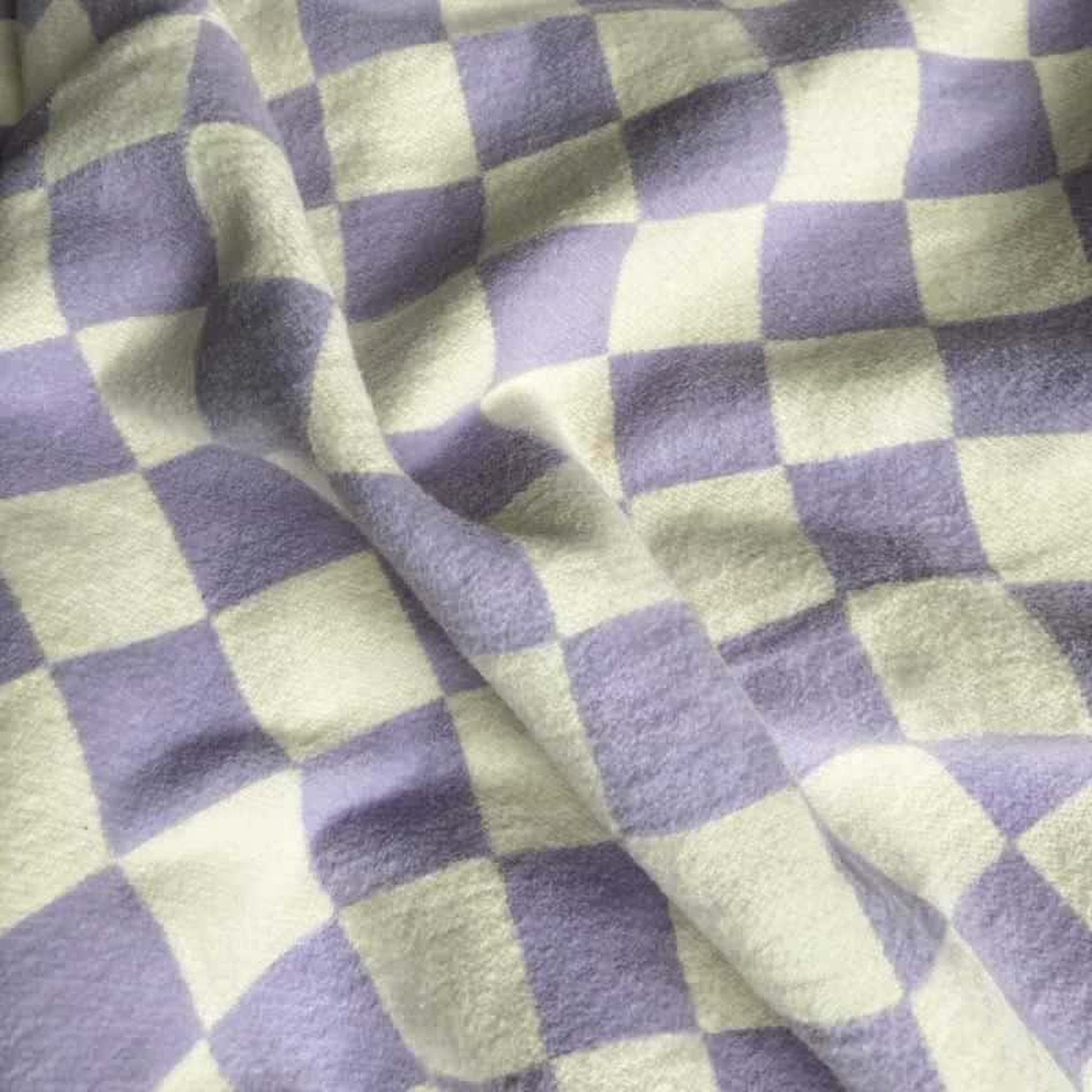 Made in Britain, the One Nine Eight Five checkerboard throw in lilac is crafted from recycled cotton, saved from garment making factories, broken down into fibre and re-spun into yarn. It's then woven, brushed and sewn using traditional techniques in British mills. The ultimate balance in design and comfort, the traditional blanket-stitching offsets the super-soft and tactile fabric, perfect for getting cosy whether it's draped across a sofa or a bed.