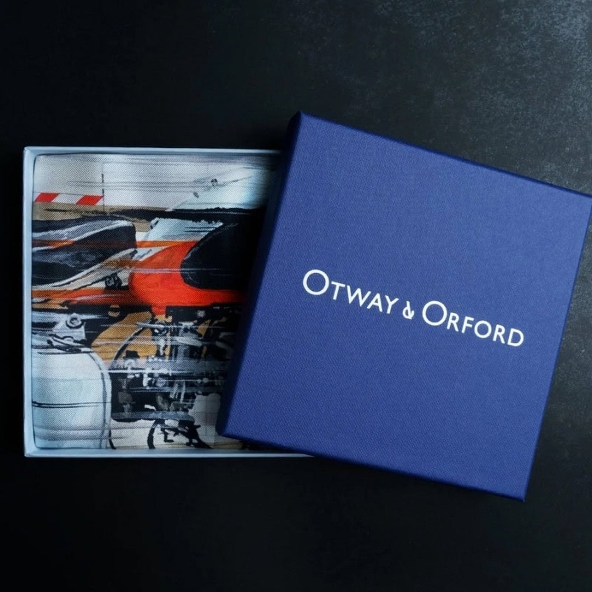Otway & Orford creates unique luxury silk pocket squares inspired by the founder's grandfather, a captain of glamorous ocean liners during the 1920s and 1930s who never went to sea or land without his pocket square. Named after two of the ships he commanded, this distinctive men's accessory brand collaborates with leading British artists to produce striking designs featuring iconic aviation, legendary motorcars, historic ships, and celebrated sporting moments. Each full-size pocket square is expertly printed on the finest silk twill in Macclesfield - the historic home of English silk printing - then traditionally hand-rolled and hand-sewn for an impeccable finish. These vibrant works of wearable art serve as wonderful conversation starters, bringing a flourish of style and color to any jacket or suit. Every beautifully gift-boxed square includes a card telling the story behind the artist's evocative design.