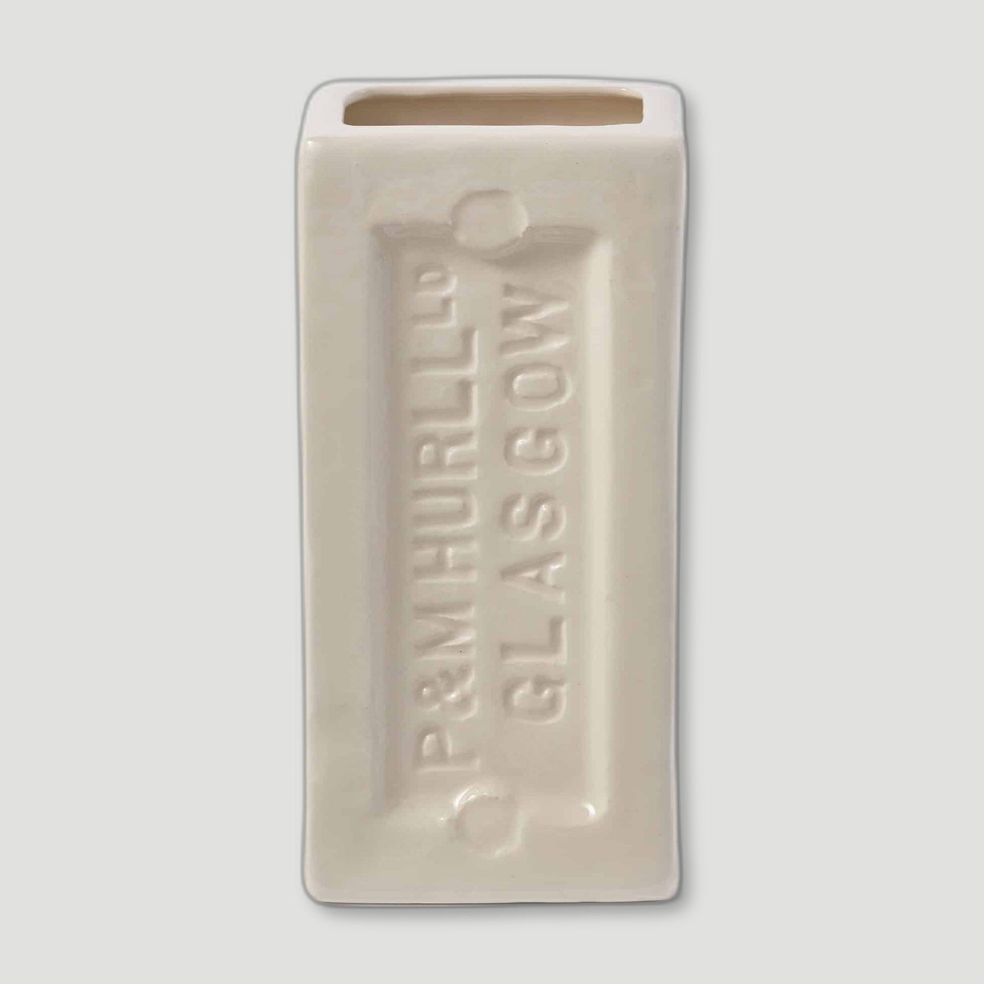 The Glasgow Brick, nothing is quite so ubiquitous around the second city of the Empire. It is everywhere, yet rarely taken notice of, apart from by architecture buffs and builders. Stolen Form have reimagined the humble Glasgow Brick and re-appropriated it to become a sleek ceramic white Glasgow Brick Vase. Handcrafted in Stoke-on-Trent by a master ceramicists. A Stolen Form white Brick Vase will surely become a talking point in any room.