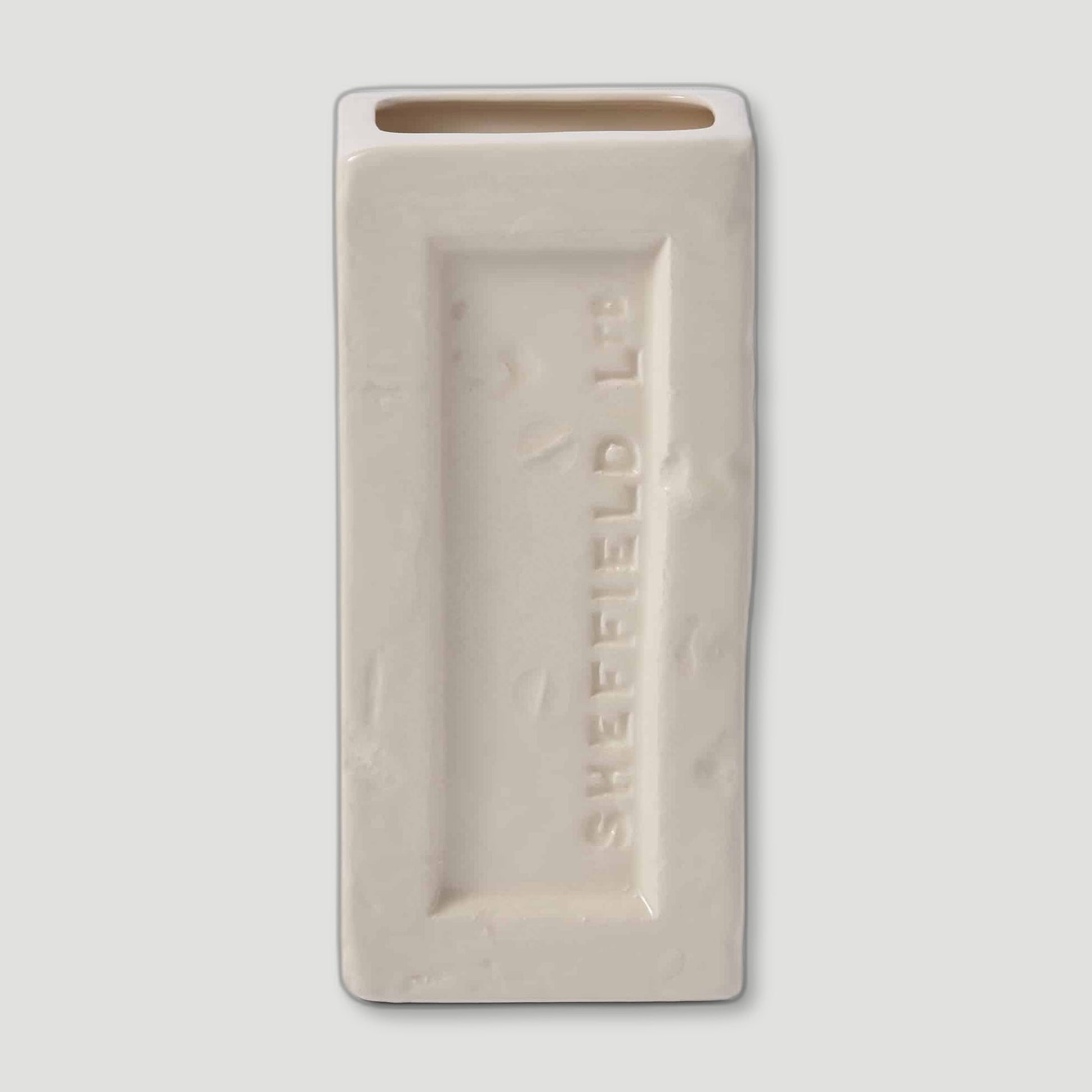 The Sheffield Brick, nothing is quite so ubiquitous around the ancient city that was crucial to the industrial revolution. It is everywhere, yet rarely taken notice of, apart from by architecture buffs and builders. Stolen Form have reimagined the humble brick and re-appropriated it to become a sleek ceramic White Sheffield Brick Vase. Handcrafted in Stoke-on-Trent by a master ceramicists. A Stolen Form White Sheffield Brick vase will surely become a talking point in any room.